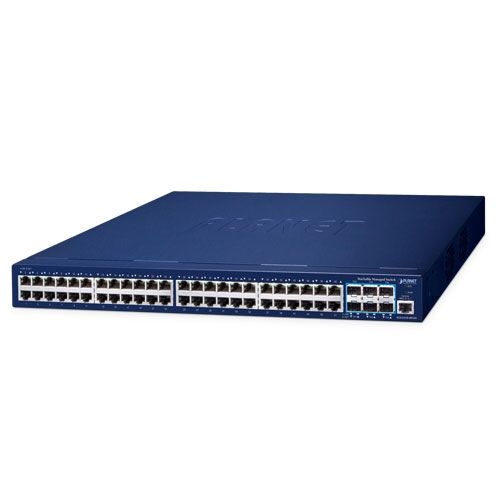 PLANET SGS-6310 series is a brand-new Layer 3 Stackable Managed Gigabit Switch with 10Gbps uplink capability for various kinds of network applications and flexible deployment. The SGS-6310-48T6X features 48 10/100/1000BASE-T RJ45 ports and 6 1G/10GBASE-X SFP+ ports with 216Gbps switch fabric delivered in a 1U rugged case design.