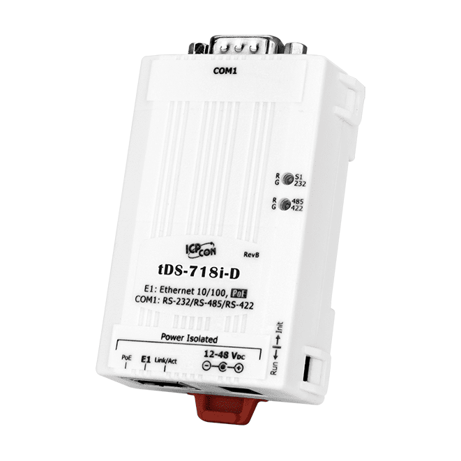 tDS-718i-D Tiny (1x RS-232/422/485, DB-9 Male) Serial-to-Ethernet Device Server with PoE & Isolated Power Input