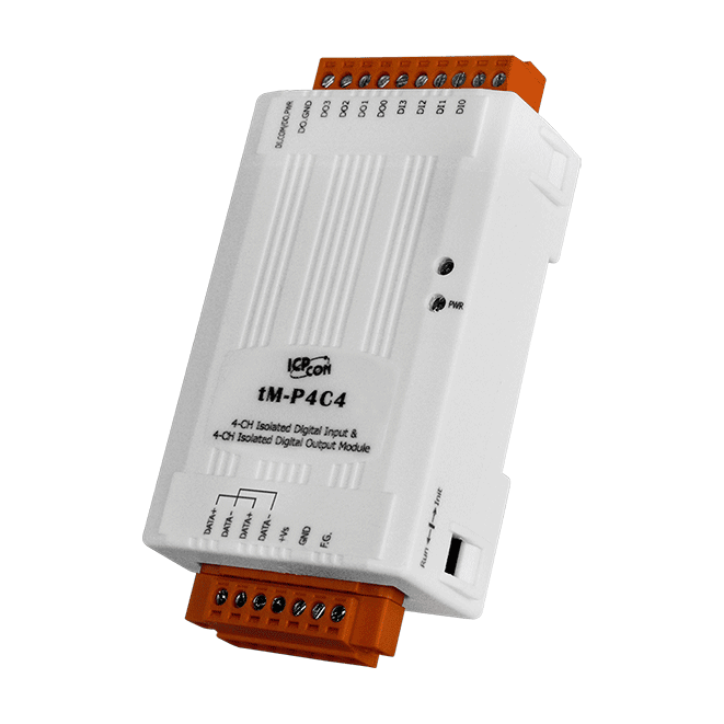 The ICP DAS tM-P4C4 provides 4 channels for digital input and 4 channels for digital output, each of which features photocoupler isolation. The tM-P4C4 supports sink-type output with short circuit protection, while the input is source-type.