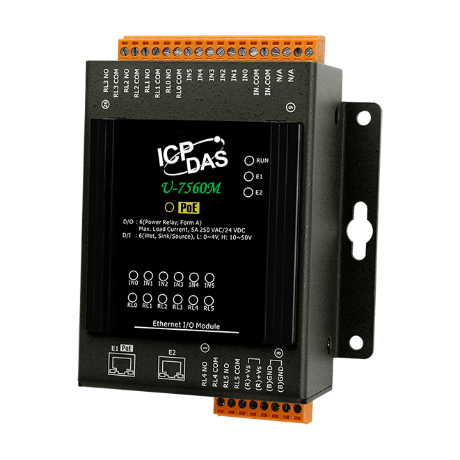 U-7560M OPC UA I/O Module with 6-ch DI, 6-ch Relay & 2-port Ethernet Switch