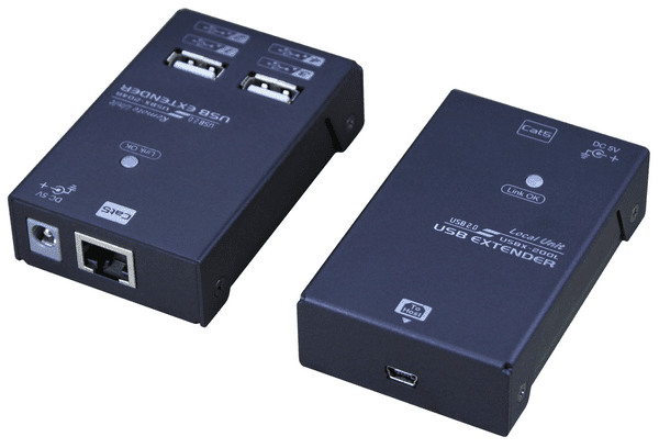 The Rextron USBX-M200A, 4 Port USB 2.0 Extender, extends 4 x USB 2.0 signals up to 50M over a single CAT.x cable. USB 2.0 Extender is compatible with Windows, MAC and Linux OS. There is no need to install software or driver, just plug and play. Extender unit provides a durable, high quality connection, complies with USB 2.0 specifications, and is downward compatible with USB 1.1 and USB 1.0 devices, which ensures reliable data communication.
