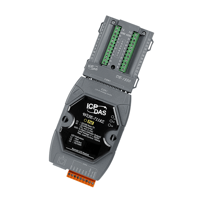 This multi-function module WISE-7118Z/S supports Modbus/TCP protocol to make seamless integration with SCADA software available. It features 16-bit, 10-channel differential analog inputs and 6-channel digital ouputs. Each analog channel is allowed to configure an individual range and has 240 Vrms high over voltage protection.