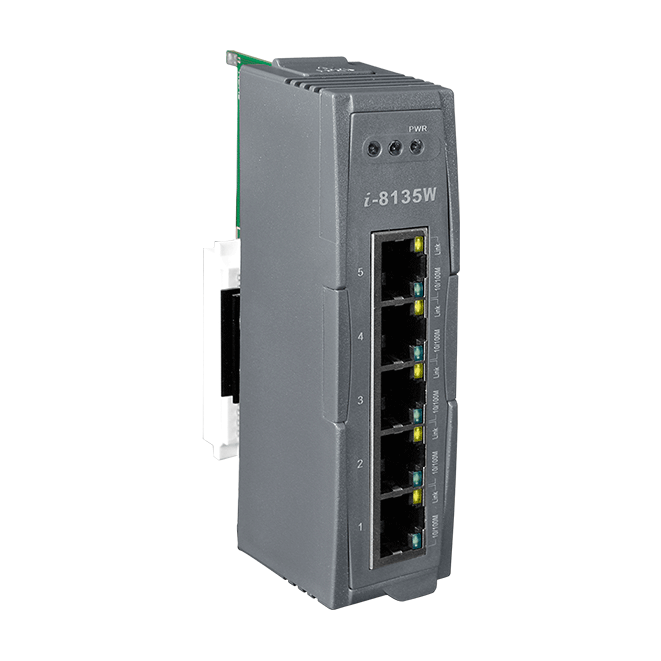 The ICP DAS I-8135W is a flexible and high performance five-port Ethernet switch module. It can be installed in PAC (XPAC, WinPAC, LinPAC, iPAC & ViewPAC) and directly gets power from the back-plane. An extra power adapter for an Ethernet switch is not need any more. In your PAC solutions, if you want to expand Ethernet connection, ICP DAS I-8135W is good to replace regular Ethernet switch to save installation space and power adapter.