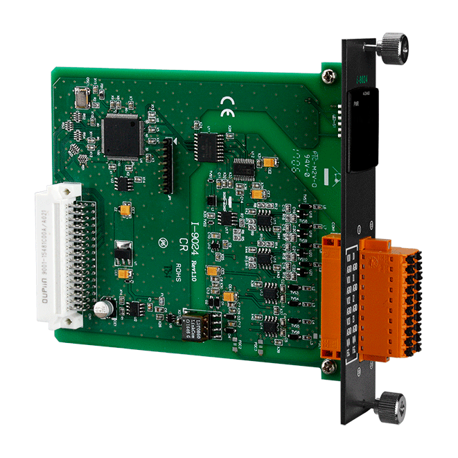 The ICP DAS I-9024 is a 14-bit analog output module which offers 4 single-ended analog output channels. Every channel can be programmed to an individual output range of ±10 V or 0 ~ +20 mA. The I-9024 provides RF immunity level matching that defined by IEC 61000-4-3 standard together with 4 kV ESD protection and 3000 VDC intra-module isolation.