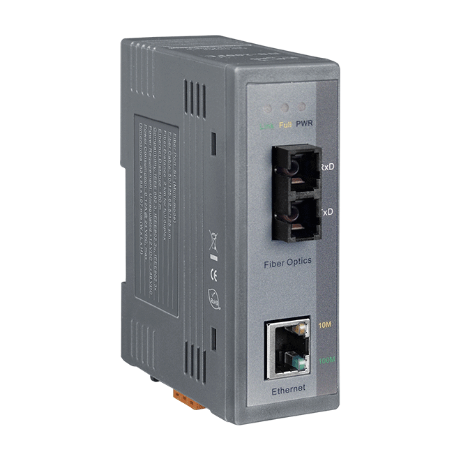 The ICP DAS NS-200AFC-T is a Ethernet (10/100 Base-TX) to Media (100 Base-FX) converter. The Ethernet supports 10/100M auto negotiation feature and auto MDI/MDI-X function. NS-200AFC-T can work normally from -30 ~ 75°C and accepts a wide voltage range from +12 ~ 48 VDC.