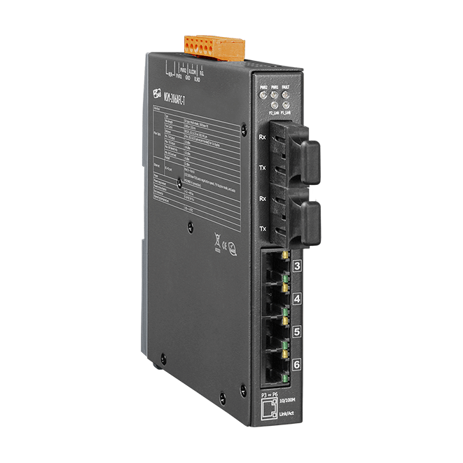 The ICP DAS NSM-206AFC-T is a 4-port unmanaged Ethernet with 2 fiber port switch. Using fiber optics, you can prevent noise from interfering with your system and supports high-speed (100 Mbps) and high-distance (up to 2 km) transmissions.