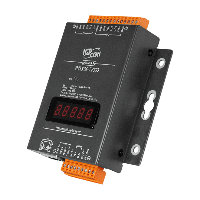 PDSM-721D Programmable (1x RS-232 and 1x RS-485) Serial-to-Ethernet Device Server with 6x DI, 7x DO and LED Display (Metal Case)