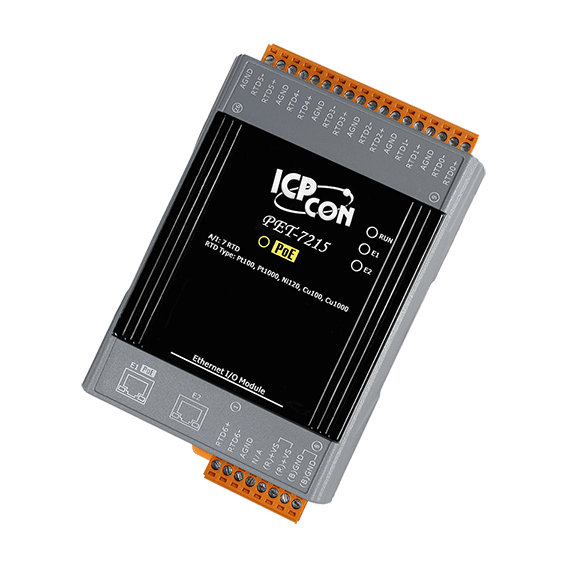 The ICP DAS PET-7215 is specifically designed for long-distance RTD measurement with Power-Over-Ethernet (PoE). It features automatic compensation for three-wire RTD regardless of the length of wires and provides open wire detection for RTD measurement.