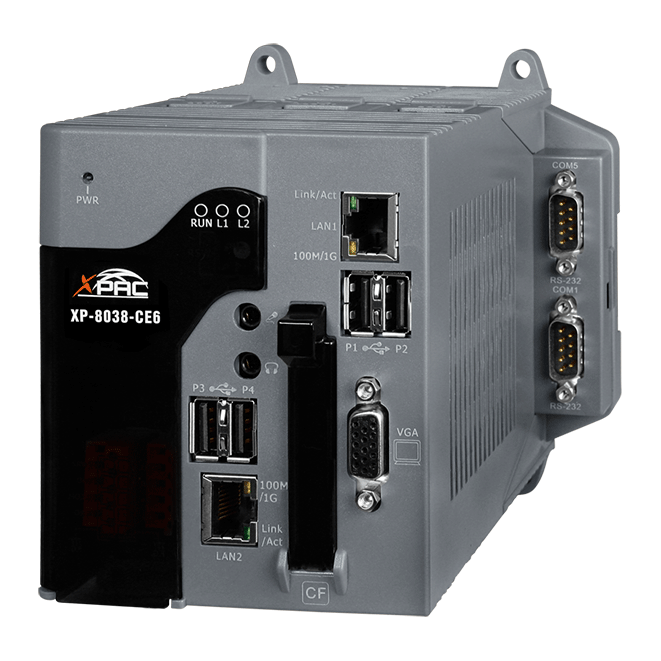 The Win-GRAF XPAC-8000-CE6 Series (XP-8038-CE6/XP-8138-CE6/XP-8338-CE6/XP-8738-CE6) is the new generation WinCE 6.0 based Win-GRAF XPAC (Programmable Automation Controller) from ICP DAS. Each is equipped with an x86 CPU (1 GHz) dual-core running a Windows CE 6.0 operating system, a variety of input/output ports (VGA, USB, Ethernet, RS-232/485), and a range of I/O slots (0/1/3/7) that can be used to integrate high-performance parallel I/O modules (high profile I-8K Series) or serial I/O modules (high profile I-87K series).